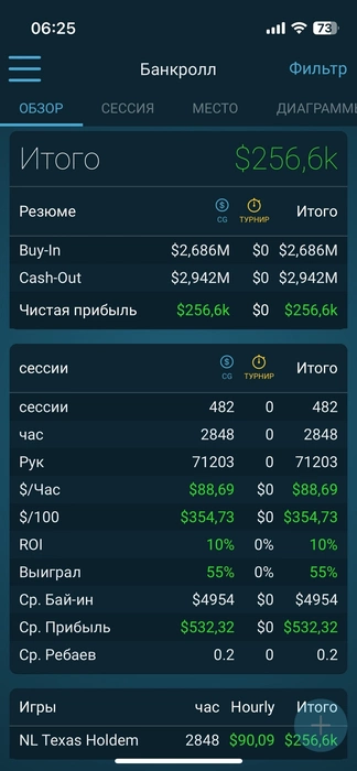 Всего 336 часов, что довольно мало долгое время просто не хотелось играть. Последнюю неделю катаю каждый день, наконец то поймал рабочий тонус и набрал хорошую игровую форму(стали чето раздавать😂). Перестал испытывать негатив из за неразделенной любви, спасибо покеру за это. Прекрасно чувствую себя за столами и готов играть по 10 часов+ каждый день.