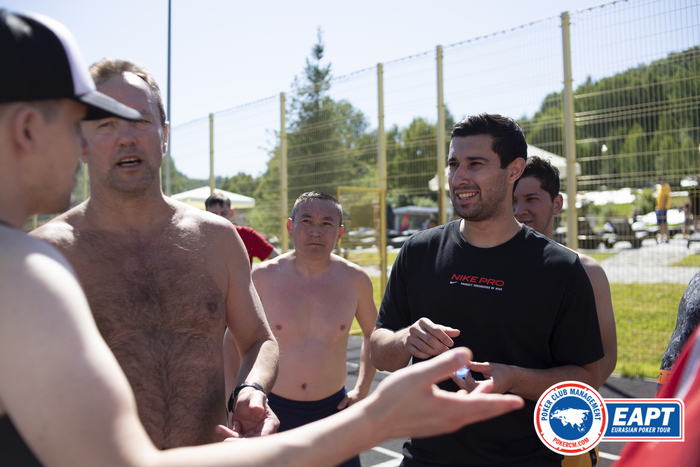 Пятницу участники серии EAPT Алтай снова начали на спортивной площадке, где поиграли в футбол. А к 12:00 переместились за игровые покерные столы, где начался флайт Main Event День - 1B и сателлит к нему.
