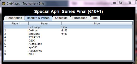 так же сегодня занял 1е место в специальном турнире .. с оверлеем + 50 евро .. всего участвовало 7м человек..но заходило мне конечно фантастически.... а так приятно.. надеюсь скрин приложу чуть позже.... после того как его выложат в теме рума..... а вот он и скрин готов