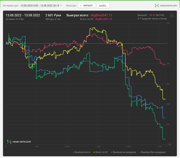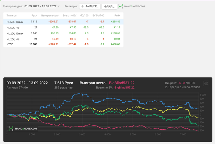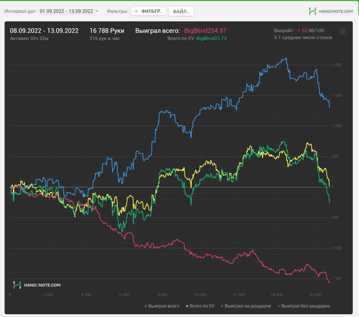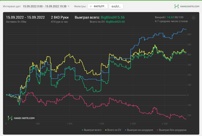 3) Вариант для тру гриндеров с железными нервами и несгибаемой волей. Играть 1000+ рук в час с винрейтом -1-0бб/100 с РБ 146%, переживать жесточайшие стрики, но иметь фиксированный доход за счет РБ.