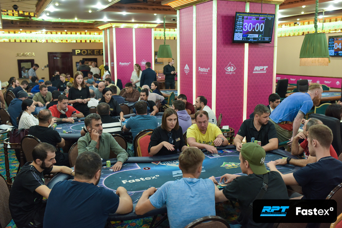 По завершению первого уровня в Day 1A шесть полных столов и очередь у стойки регистрации. Уже в игре Константин Костяков, Илья Чугунов, Сергей Чанцев, Алексей Денисенко, Роман Гладкий, Николай Коробов, Леонид Курагин, Эдгар Оганян, Артем Тужик, Александр Шумский, Давит Галстян и многие другие.