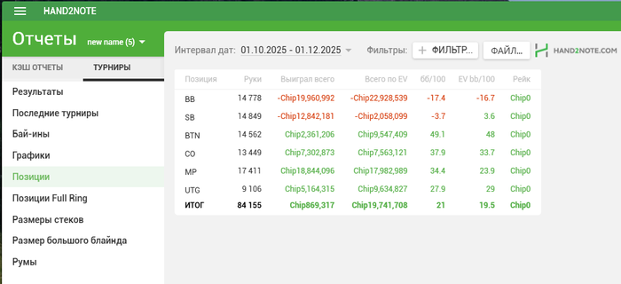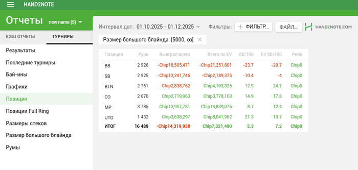 Октябрь+ноябрь откатал с такими винрейтами. Соответственно апнулся по лимитам. За год сыграно 6000 мтт. Игрой своей доволен.