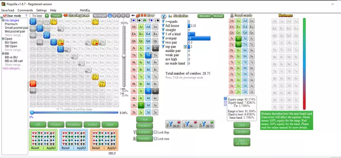Примерно 26 комбинаций велью, чтобы наш колл был 50%+ хотя бы, нужно 26 комбинаций блефов. Это он должен блефовать все АК и 75% всех своих АД.