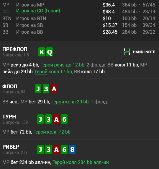 На тёрне диапазон СО состоит из AQ-AJ-AJ на мой взгляд.