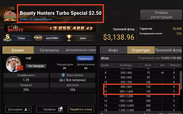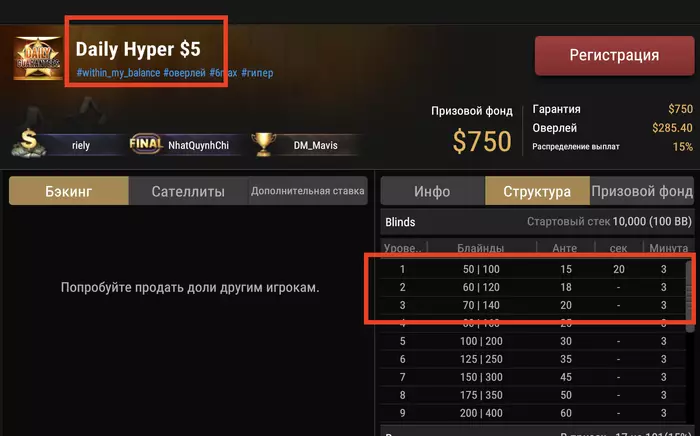Про "особенную" структуру турниров тоже не надо ничего говорить. Я также играю гипер/турбо турниры на WPN, но там так не раздают.