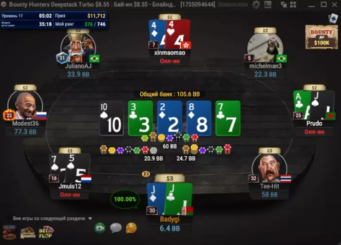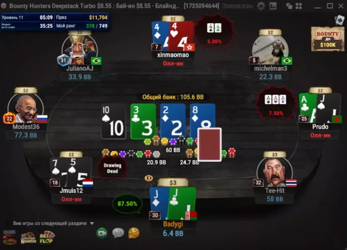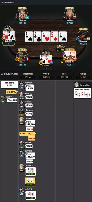 К вопросу о том, что рум своим оформлением выводит на эмоции, отчего появляется искаженное восприятие ГСЧ. Я играю в режиме шлема, последняя карта на ривере, которую нужно вручную открывать, никак не влияет на мое эмоциональное состояние от слова совсем, потому что я часто играю много столов и порой даже не успеваю перевернуть ее сам.