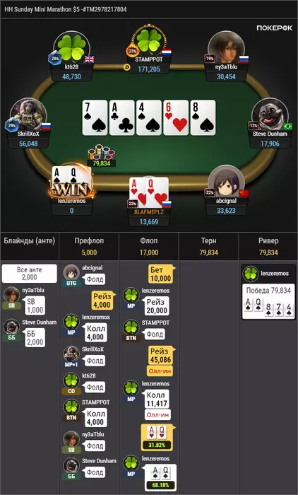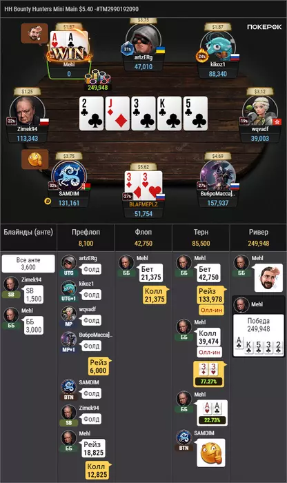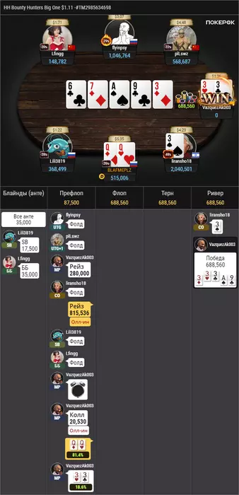 Не являюсь сильным игроком , но забирал пару хедзап зум турниров на пс в течение полугода где было 1000+ человек , периодически на финалочки турниров залетаю разных диапазонов , но в целом минусую . Основное - часто иду выше играть банкролла