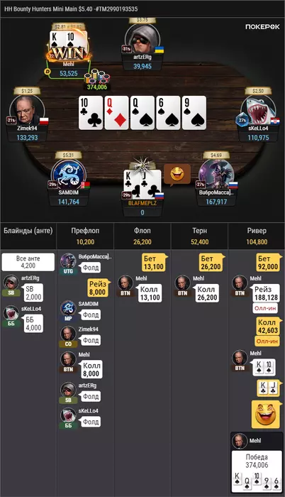 Фиш про себя - блин реально честно, я столько EV залил, ну наконец-то пришло.В ситуации сильного игрока, ты набиваешь фишки математикой, но на предфиналке тебе говорят - стопе, призы уже под сумму вашего депа, лови фиша выше в раздачу))