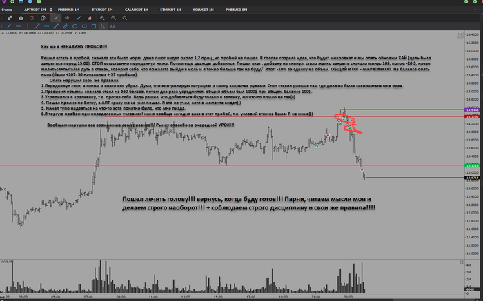 Если кто знает, как перестать делать такую хуйню в торговле, пожалста поделитесь!!! Просто иногда не могу закрыть минус, тупо сижу и и смотрю как меня уносит в АД!!! Заранее благодарен! Всем мира, парни!