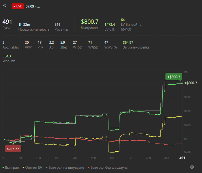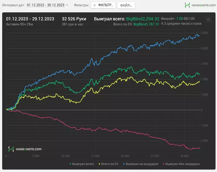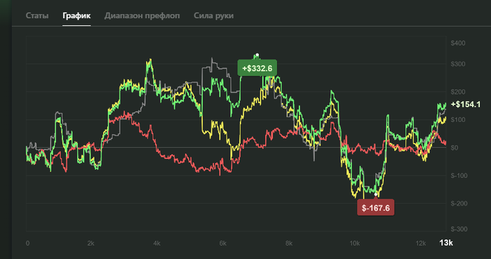 Ах да, а что на счёт покера?) Продолжаю играть 50-100 онли чико, дистанция за месяц: