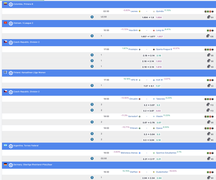 Тогда я решил посмотреть несколько команд, подобных Спарте Праге Б, чтобы увидеть значение UDI в ставках на подобные команды. К счастью, таких команд не так уж много относительно общего числа. Но с каждой новой командой, которую я открывал, я все больше и больше убеждался, что нашел весьма немалую утечку, которая уменьшает мое математическое ожидание, а вместе с ним, соотвественно, и профит. Покажу лишь несколько примеров, внимательно смотрите на UDI.