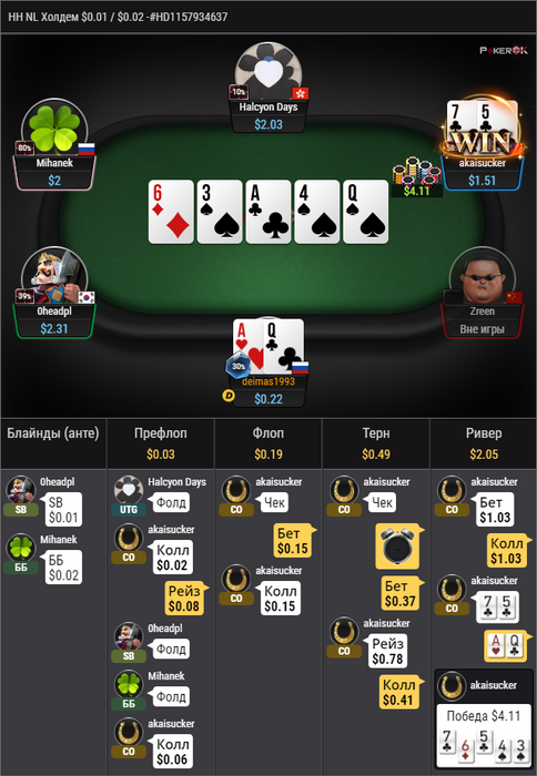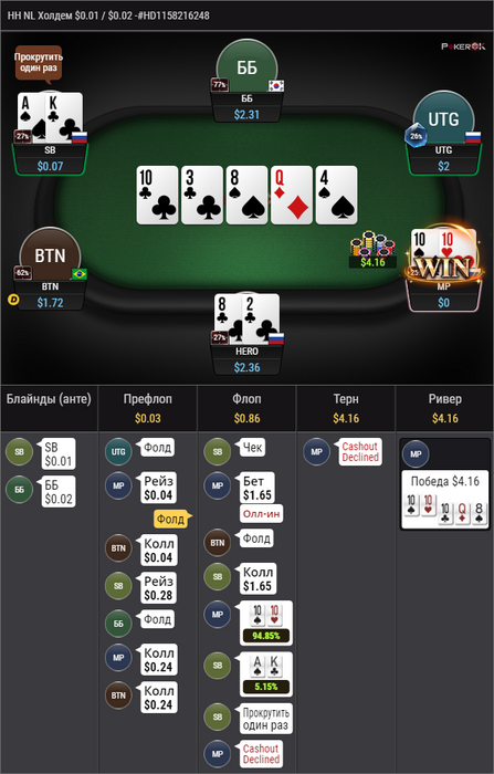 Я помню, что в этой раздаче я совершенно не увидел стрит.