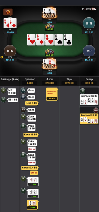 deimas93, Статы бы его знать. Гатшот он в принципе норм вколил на флопе, Я бы думаю не смог выкинуть. Мы бьем все, кроме сетов и стрита. Там двух пар у него и просто тузов, вагон и маленькая тележка. И упоротые блефы, то же никто не отменял. Хоть по его линии это почти всегда сила, но мы очень много бьем. Очень часто ты там увидишь доперы слабее или да же криво сыгранные АК.