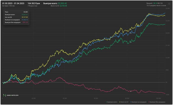 Когда график не растет, смотрю сыграные раздачи в ХМ по разным фильтрам. Это действие не дает усомниться в правильности своей игры.
