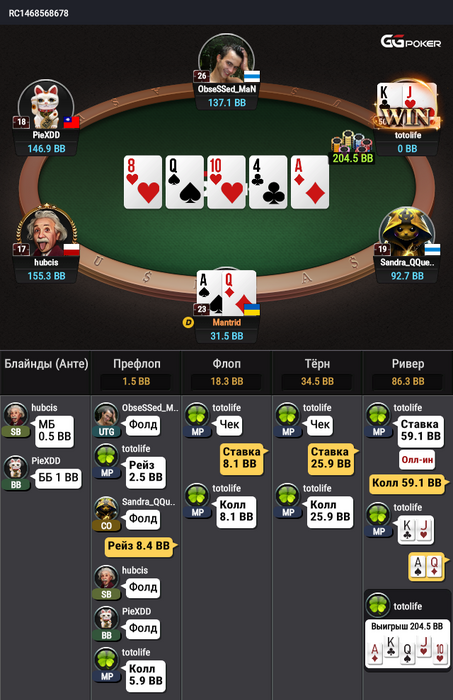 Madved, я не успел поставить ,хотел не много поставить,чтоб на аллин выкинуть ,как показывает практика на аллин там только АА КК