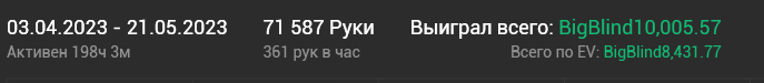 Так же оставлю результаты в новом руме, где я играю 200-500. Раздач там понятное дело мало.
