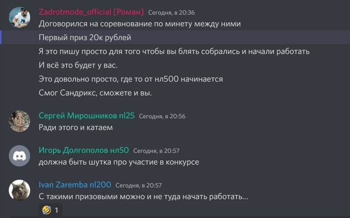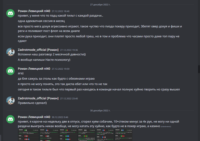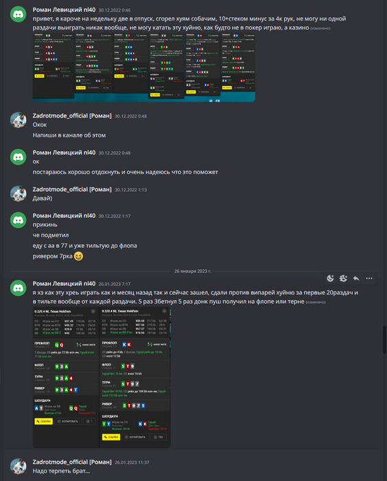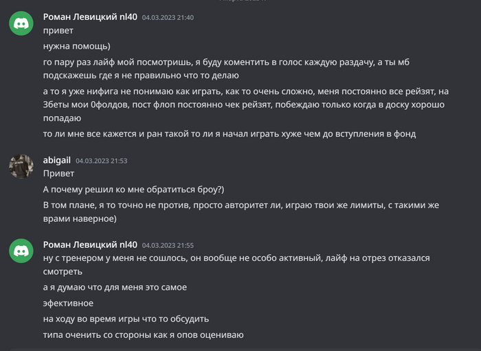 отмечу, что у нас коммуникация с игрокам, касающаяся их дел в рамках команды идет в отдельных дискорд каналах, а это наша частная переписка.
