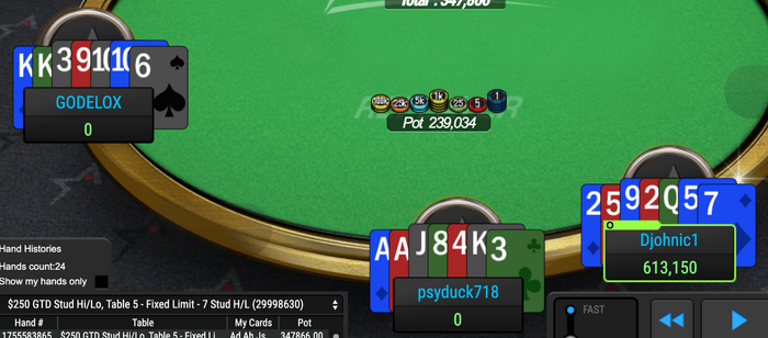 Сегодня опять совсем не заходила карта, очередные -$44 Стараюсь больше наблюдать как играют другие игроки.