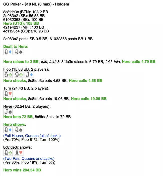 вообще с ГГ самые интересные раздачи будут, на WPN это я как понял, 70% раздач выкладывал против БОТОВ блять. Потому что люди на WPN играют СЛИШКОМ ХОРОШО, сбалансировано, много игры уровня мастера спорта. На ГГ ты играешь против 2-3 разрада, я могу просто показать ряд раздач в эксплойт поляны, потому что она просто супер нитовая. Насколько слабые чеки, насколько слабые коллы на мелкие сайзинги, насколько мало защиты ББ vs BTN/SB, хуета в ренджах. Я разбирал вчера игру J0hnMcclean (+100к на WPN сделал с хорошим винрейтом), его невозможно обыгрывать в плюс, если покопаться в базах Avalan4, YoungPretender, labuenavida ебаная (Vpip23 и PFR18 и WSD выше 50%) - ты против них катаешь в 0 в лучшем случае.