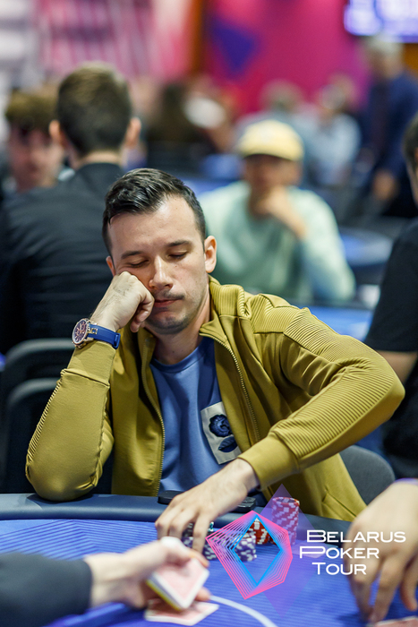 Очень важный олл-ин смог выиграть Антон Кулаков. Остался совсем без фишек на предбаббле, нашел подходящую руку на баттоне — .