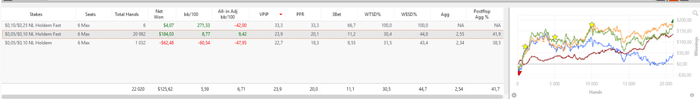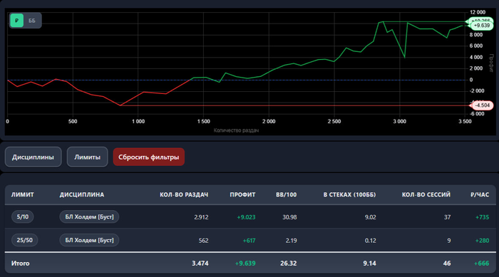 Общий винрейт на NL10: 9.5 bb/100 (30 bb/100 на Pokerdom и 6.7 bb/100 на PokerOK).