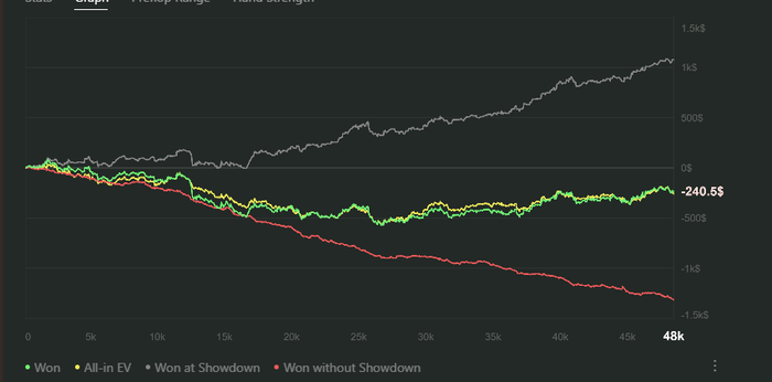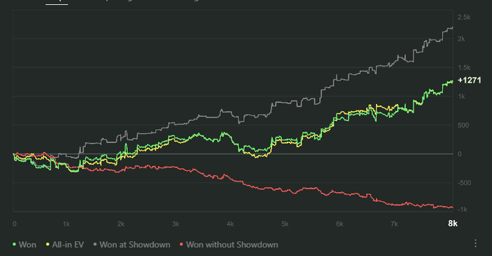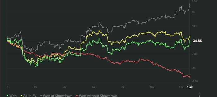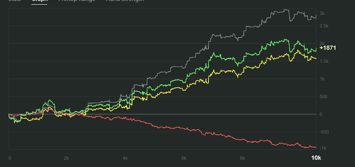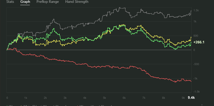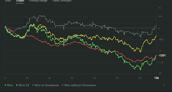 Если честно, ожидал. Вообще не страшно, просто корректировка слишком крутого винрейта, я на 18бб/100 пока точно не умею играть. Теперь 10 (по EV11). Что очень не плохо.