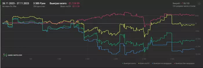 Ну а если серьезно, закончил сессию я часа четыре назад и думал, встану там, поиграю утром, объединю две сессии и все такое, но как-то засиделся за просмотром видосов и при попытке скачать один из них, обнаружил внезапно отвалившийся жесткий диск с коллекцией вайфух и бесценных мемных видео. На такой грустной ноте решил поделиться с другом новостью, о том, что ухожу из покеристов в музыканты и бесконечное аниме, не забыв поделиться регулярным минусовым графиком.