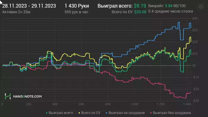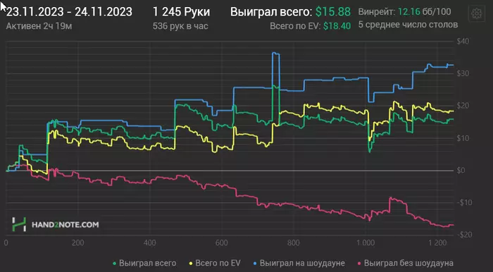 Аффилейт выдал релоад бонус,теперь 40% чистого РБ капают и это ощущается,грубо говоря я только рейкбеком имею среднестатистическую зарплату по моей области.Понятно,что час работы в покере нельзя сравнивать с часом,скажем,офисной работы...В этом плане покер можно сравнить с хоккеем (чистое время) ,а обычную работу с футболом (грязное время) 🤪 ,но уж лучше дома "играть в хоккей".