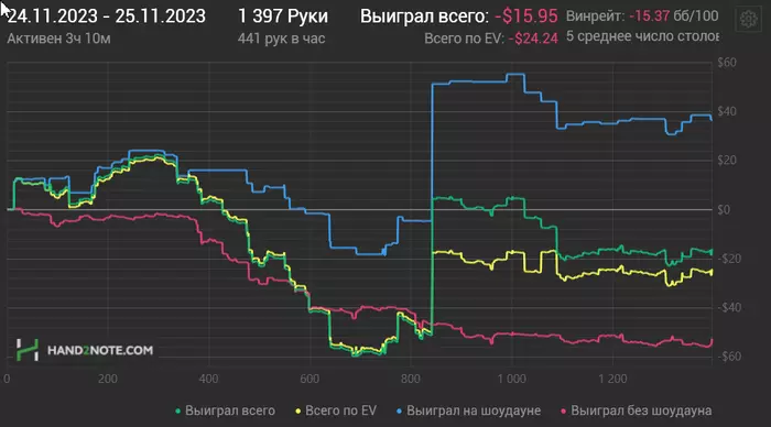 Это только три раздачи,в целом вся сессия такая...Пора возвращать долги удаче.
