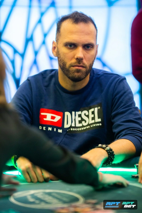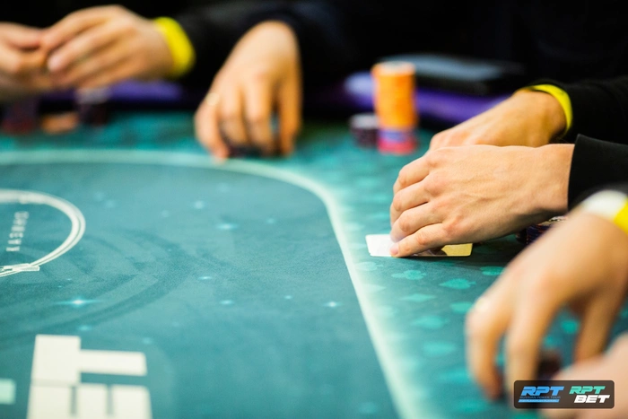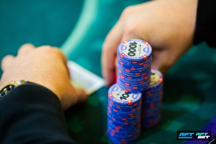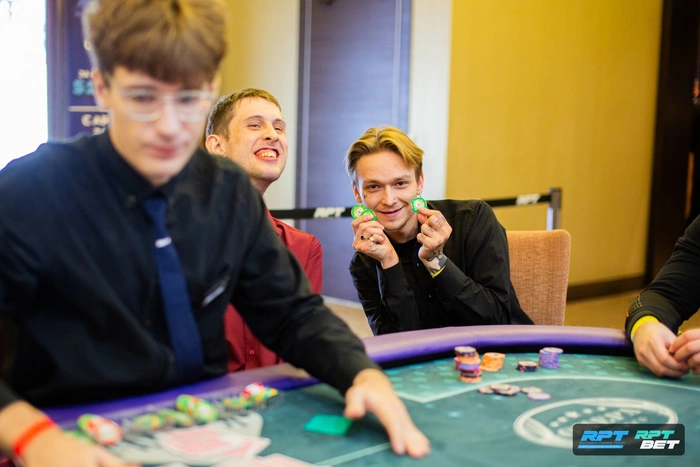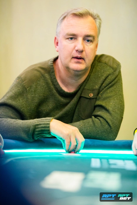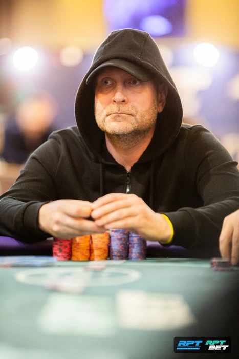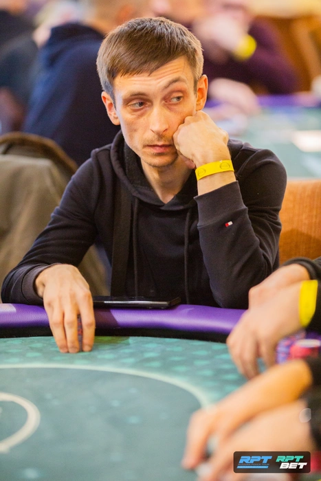 За другим столом вылетел Сергей Диденок и турнир перешел в режим синхронных раздач.