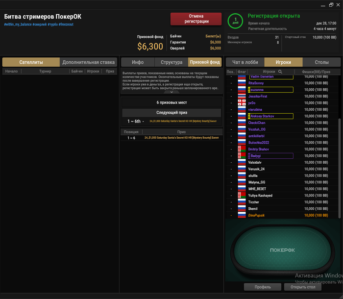 Завтра (28.12.2024) в 17.00 мск буду участвовать в турнире ПОКЕРКА - Битва стримеров ПокерОК💜