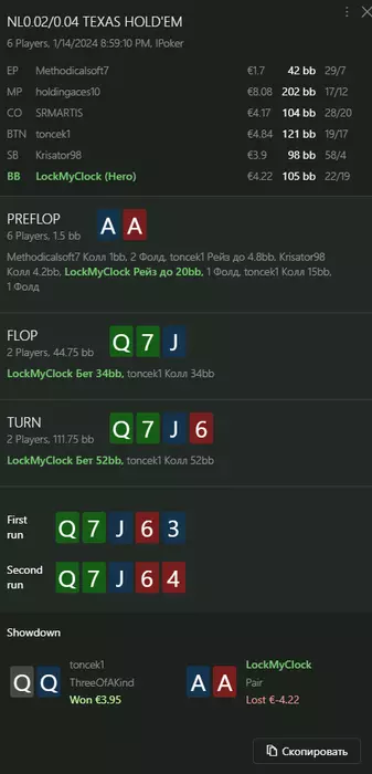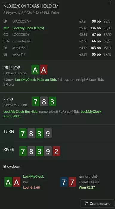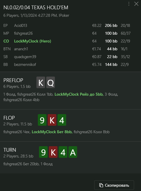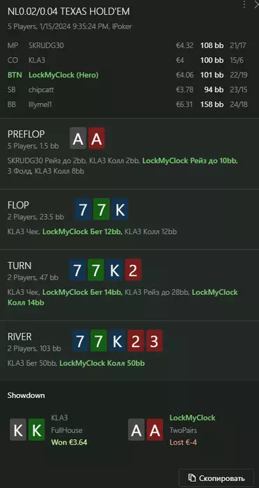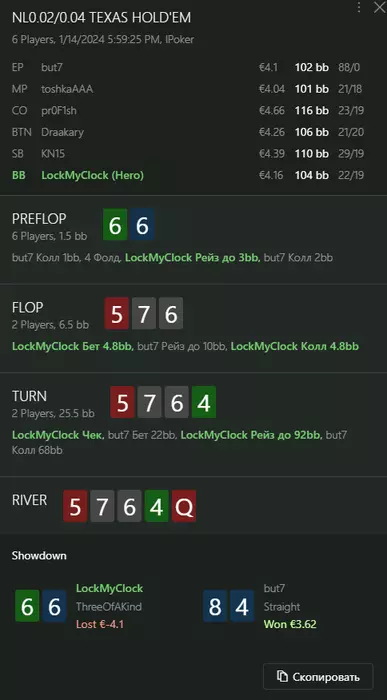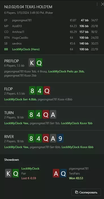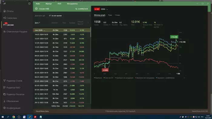 И снова всем привет , не думал , что так быстро сделаю пост , но все таки нужно написать , так как в плане би на лимит за 1 день это мой новый рекорд , вышло в сумме 15 би на нл 2, +30$(немного округлил), примерно 6 игровых часов на 5 столах смартфона :D. Буду стараться дальше , так что буду рад вашей поддержке!