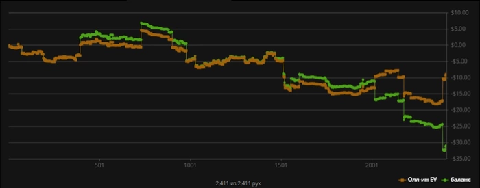 Как вам такое? За 2ч игры -7,5 ББ.