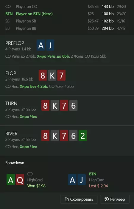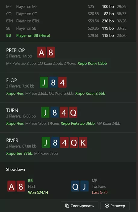вроде норм сыграно, но как то все таки хочется по риверу блефовать (терн бы всегда чекал)