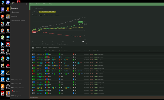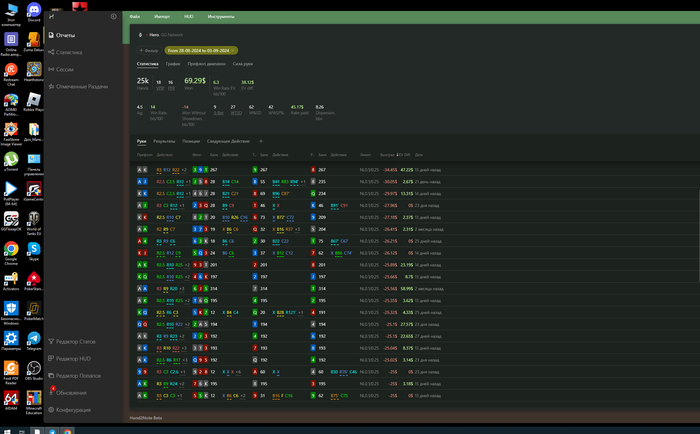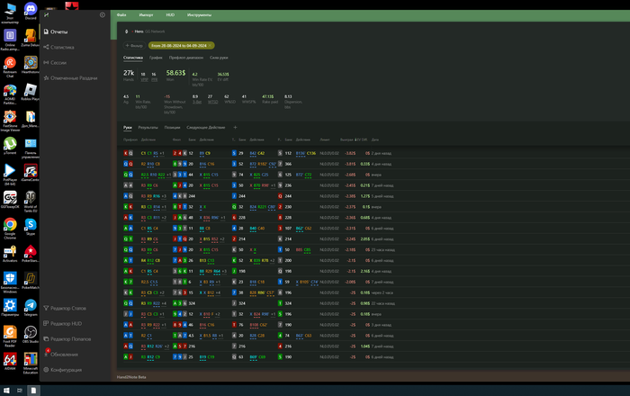 Всем доброго времени суток. Как уже писал выше я сейчас нахожусь в плохой физической форме, в плохой ментальной форме и очень в плохой игровой форме. При росте 1м 75см мой вес 90кг это пред ожирение. После ковида , потом перелома ноги далее ремонта в двух квартирах которые длились полтора года + я являюсь предпринимателем нервная система тоже мягко говоря не в лучшем состоянии, ах да совсем забыл добавить ещё и после всех неудач в покере. Так же меня выгнали с гринлайн джуниор. Пока был там были вот такие результаты