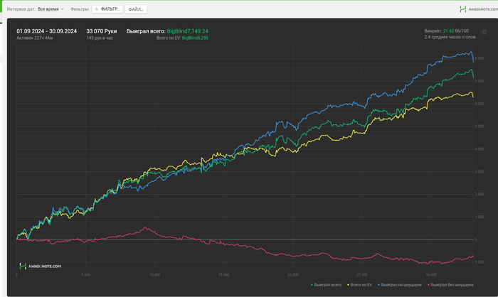 Терпенье и труд... По фишам, что неписанные правила гласят? Вельюбетим жадно, блефуем дешево, на финалке особенно. График - отличный!