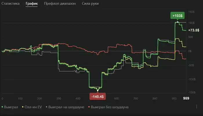 мне нет, но меня это дико смущает и заставляет задуматься над собственной игрой еще лучше. если бы не он, играл бы я сейчас в плюс. прошлый месяц закончил в минус, но после того как добавил селект в свою игру ветка все же пошла вверх, я явно в смятении, посмотрите на начальный график, я явно был бы спокоен если бы он так же ровно шел, еще у меня не такой большой опыт в игре и я не понимаю норм ли это что со мной происходит, для примера прошлый месяц я ровно шел в минус, после селекта в верх, благодаря рейкбэку даже почти все отбил, этот месяц одни сплошные качали