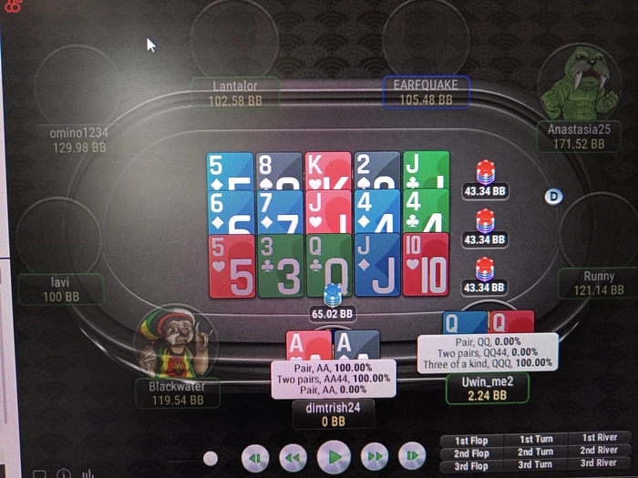 После этой раздачи я мягко говоря встал в ступор и ничего понять не мог, пока мне не разъяснили, что 3 борда так и катают, типо я где мои 160бб?после раздачи у меня в стэке было 130бб и я в ахуе смотрю и не понимаю че за хуйня, оказывается вот так😡, 3 борода в жизни не буду больше крутить, а вообще я просто не заметил, что оп предложил не 2, а 3 раза катнуть