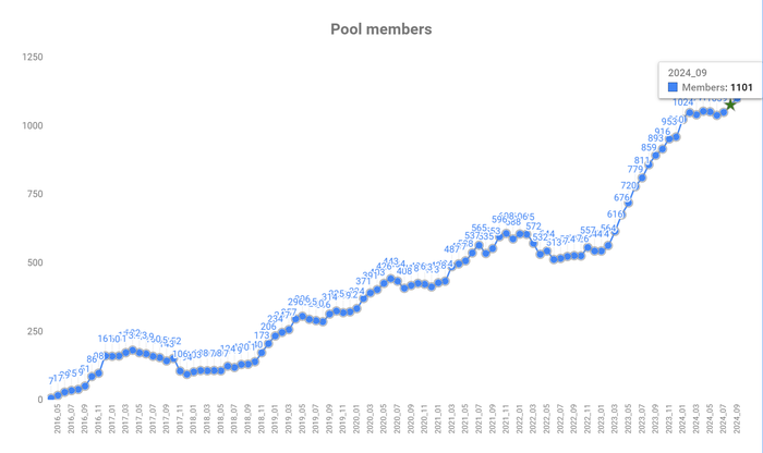 Общее количество игроков пула в сентябре 2024 года показало ATH (наивысший показатель за все время) и составило 1101 игрок!