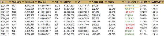 Для тех игроков нашей команды, кто состоит в пуле Hyperschool, пришла отличная новость - пул закрыл сентябрь с перебором 405k$, и, таким образом, пул практически вышел в ноль по свингу за все время работы пула – с 2016 года общий недобор по всем периодам составляет всего 11k$.