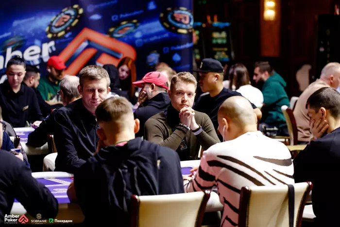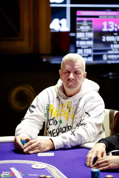 Сергей Коновалов UTG открыл 80,000. Артур Грудинин олл-ин 330,000 с . Антон Чернояров репуш с и Коновалов на все фишки 450,000 на .