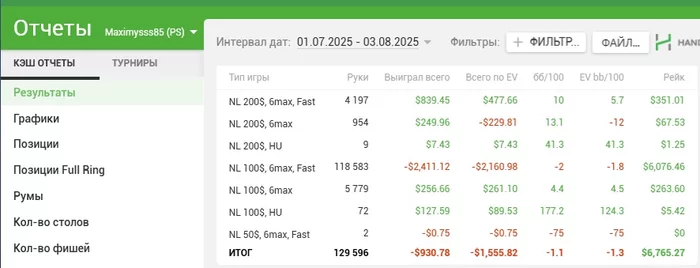 Я обновил свой рекорд сыгранных рук откатав за июль 129К раздач