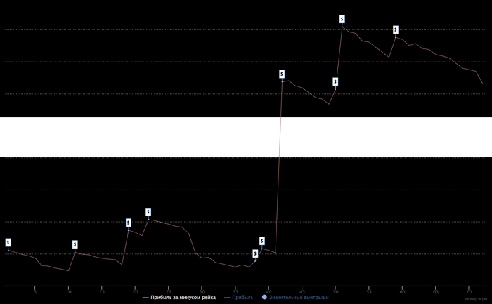 Не играл два дня, так как подустал от турнирных сессий. Но сегодня через силу зашёл в лобби и отыграл целых три турнира: 109, 22 и 5plo8 по 55 😅