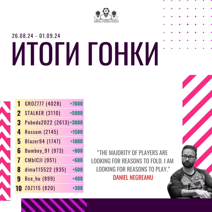 Возьму перерыв от покера с 02 по 08. Ворвусь 09.09.2024