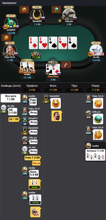 Тут я был кеороткий запушил префлоп 5 бб опп долго думал нажал все же кол и случилась авария.
