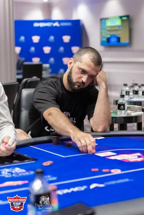 Александр Черепов в этой раздаче нажил меньше блайнда, а Глеб Ершов пока размышляет над ре-энтри на 20 bb.