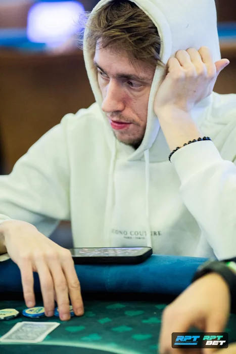 Максим Кузнецов открыл с кнопки , получил два колла на блайндах.