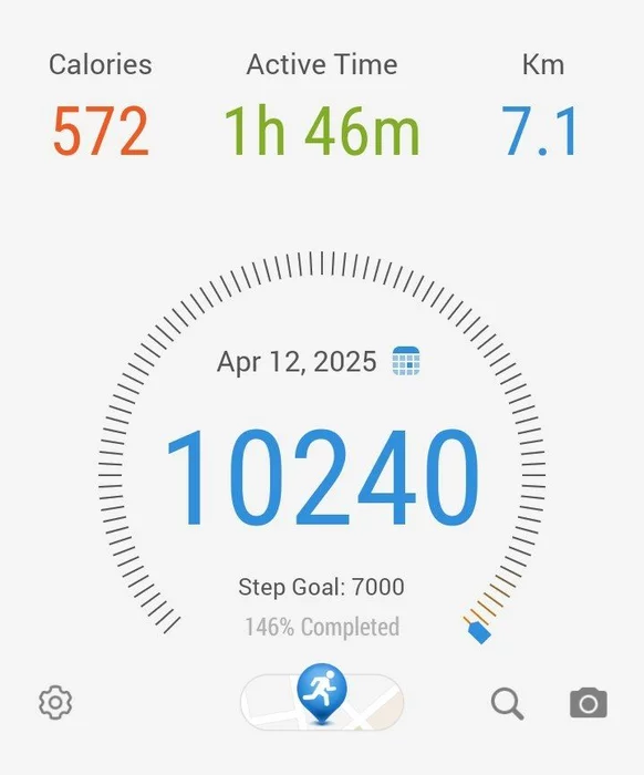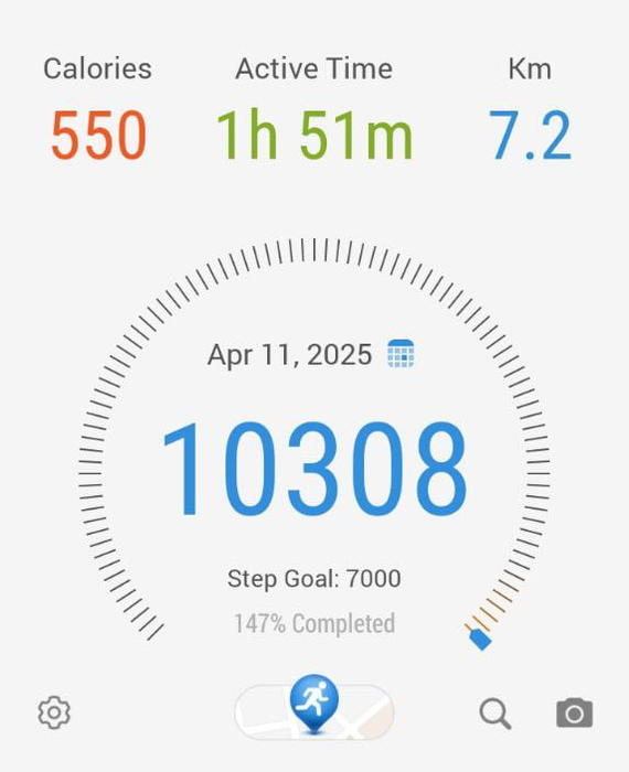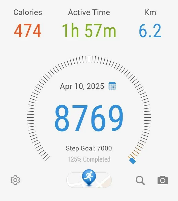 Сегодня отходил 8769 шагов. Завтра уже буду пробовать проходить 10к каждый день.