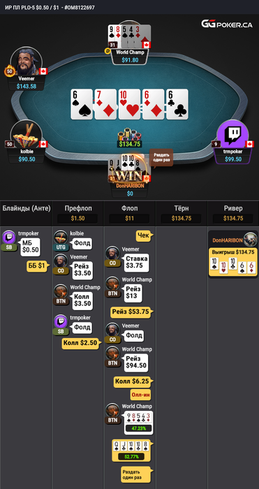 То что GG подгоняет баланс под ев некорректным отображением результата раздачи.