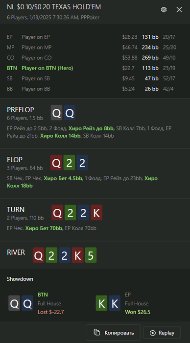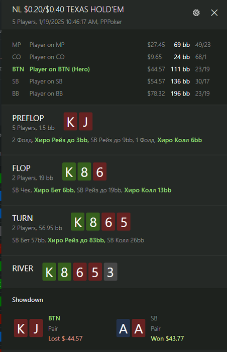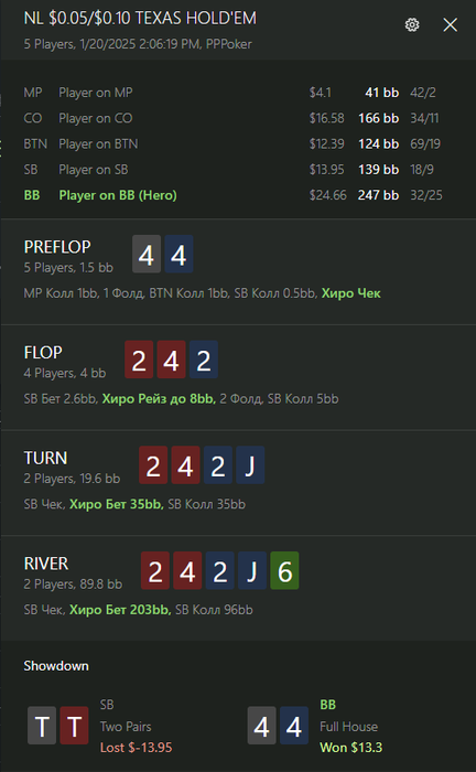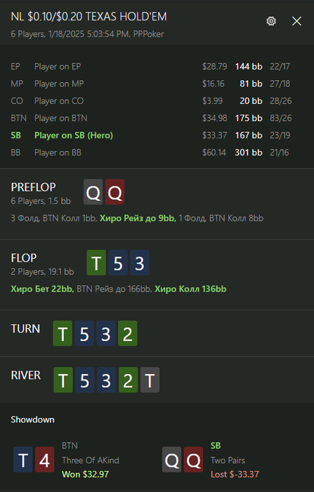 Но повторю, тут нужно было применить подстройку "до". Т.е. фолдить префлоп. Моя ошибка.